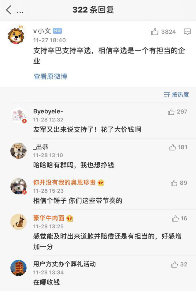 在辛巴11月27日在微博发布对燕窝事件的回应之后,被火速推上热搜,该条微博下面迅速聚集了几万条评论,细看评论内容,引人深思。