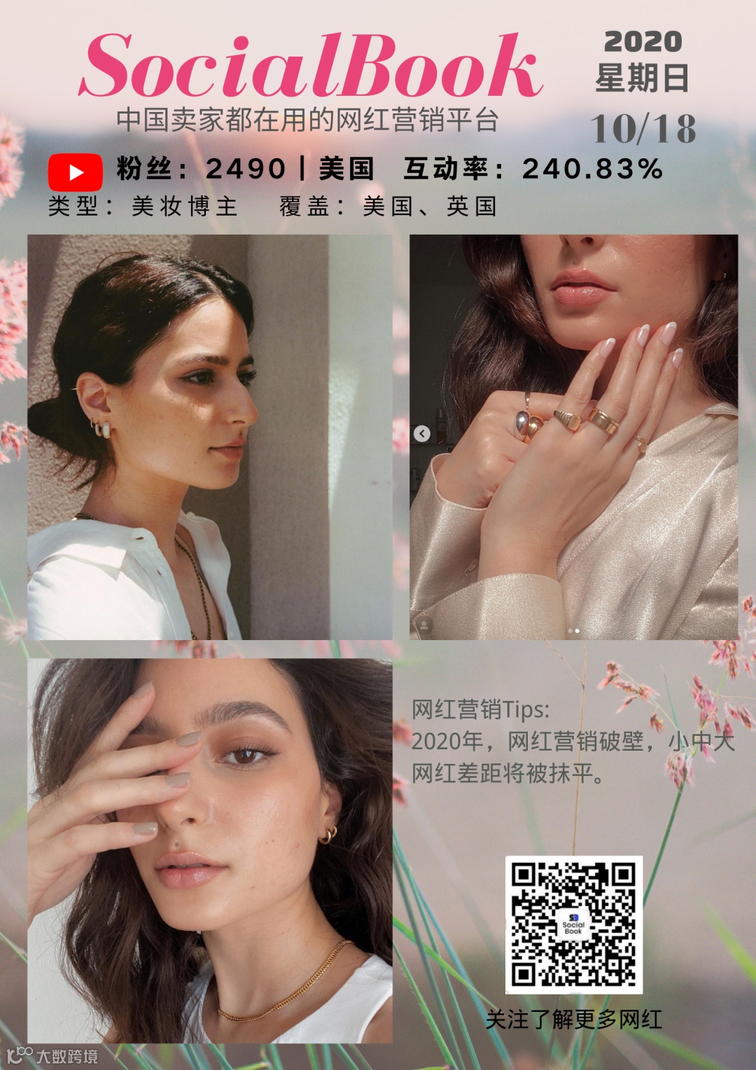 SocialBook位于美国旧金山,成立于 2014 年。通过人工智能,大数据和区块链技术搭建的实时海外网红合作平台及数据库,覆盖 YouTube 及 Instagram 全球300多万网红资源。提供标签搜索,网红画像,群发联系,线上支付、投放监测,竞品分析等服务。已成功合作华为、出门问问、小米手环、猎豹、美图等多个知名出海品牌。