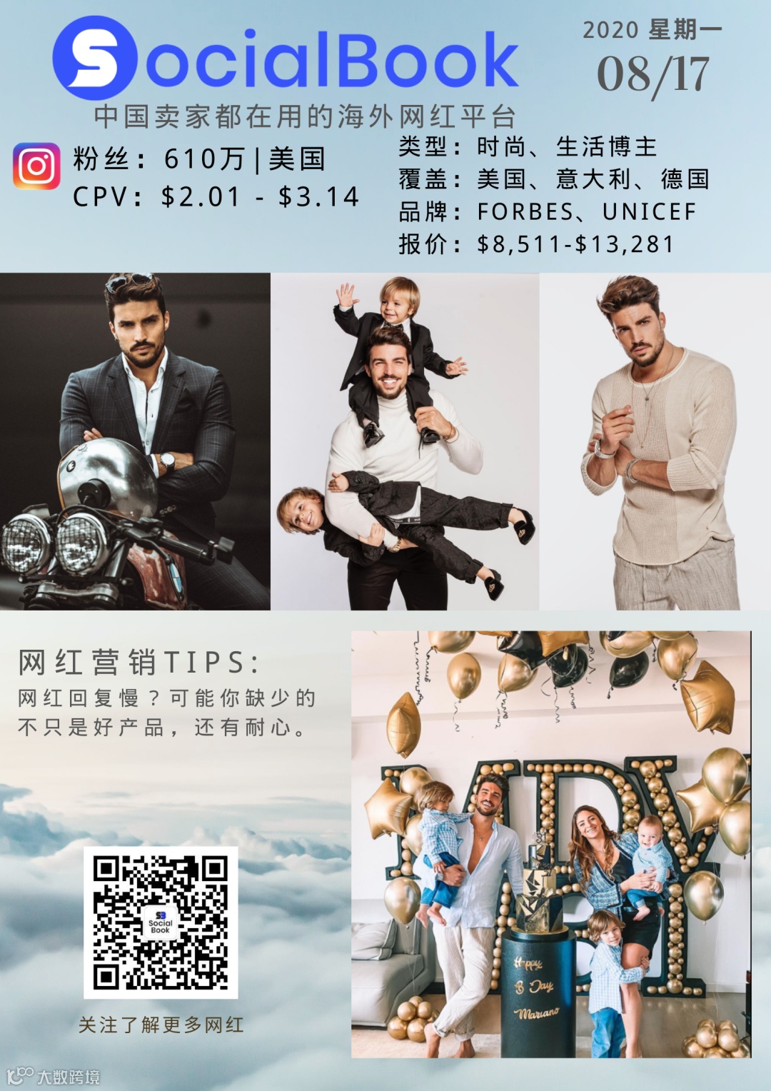 SocialBook位于美国旧金山,成立于 2014 年。通过人工智能,大数据和区块链技术搭建的实时海外网红合作平台及数据库,覆盖 YouTube 及 Instagram 全球300多万网红资源。提供标签搜索,网红画像,群发联系,线上支付、投放监测,竞品分析等服务。已成功合作华为、出门问问、小米手环、猎豹、美图等多个知名出海品牌。