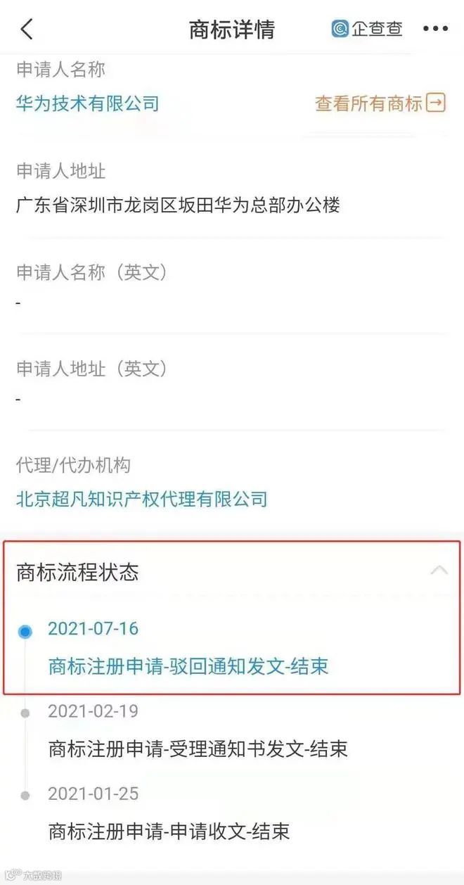 网易娱乐8月5日报道 8月4日,企查查APP显示,近日,华为申请的“姚安娜”商标流程状态变更为“驳回通知发文-结束”,相关商标国际分类涉25类服装鞋帽、3类日化用品等。