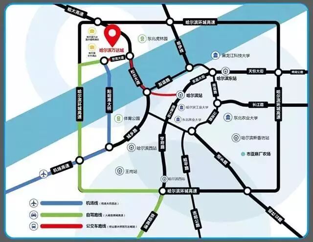 4.哈尔滨东站至哈尔滨万达乐园,驾驶约35分钟车程