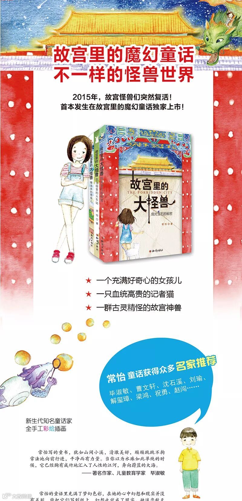 《故宫里的大怪兽》原著作者“常怡”北京人,满族,新生代知名童话家。国际童书作家与插画家协会会员