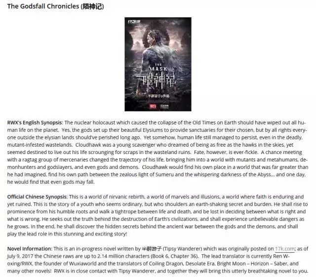 不仅如此,《陨神记》小说英文版还上线了Wuxiaworld(wuxiaworld.com),开启了海外征途的第一步。