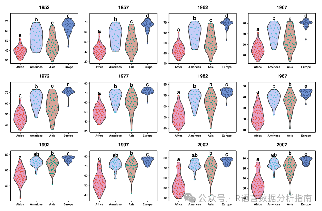 ❝最近交流群内有朋友问一些循环绘图的方法,本节就来展示多个版本的循环绘图的案例,可以输出单个图也可以合并输出,整个过程仅参考。希望对各位观众老爷能有所帮助。「数据代码将会整合上传到会员交流群」,购买过小编绘图文档的朋友可在所加的会员交流群内获取下载,有需要的朋友可关注文末介绍购买小编的R绘图文档。