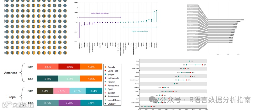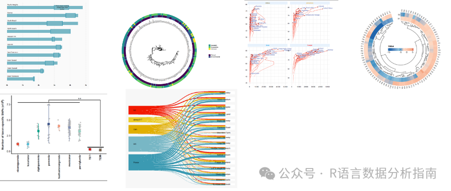 ❝我们精心整理的两份R数据可视化文档合辑,涵盖了使用ggplot2及其众多扩展包的150+图表绘制案例。从数据读入、清洗、统计分析到可视化,每一步都在一个清晰的R代码中一气呵成。非常适合进阶学习,这些案例都将带您领略数据可视化的真正魅力!