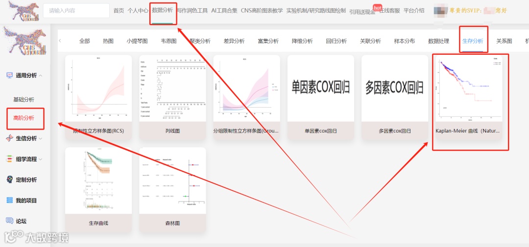 微信扫码登录进入平台找到:数据分析➡高阶分析➡生存分析,打开Kaplan-Meier生存曲线,参数选择不用改动,选择默认的即可:
