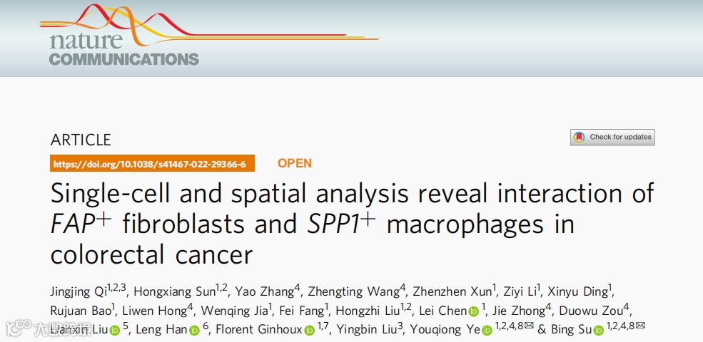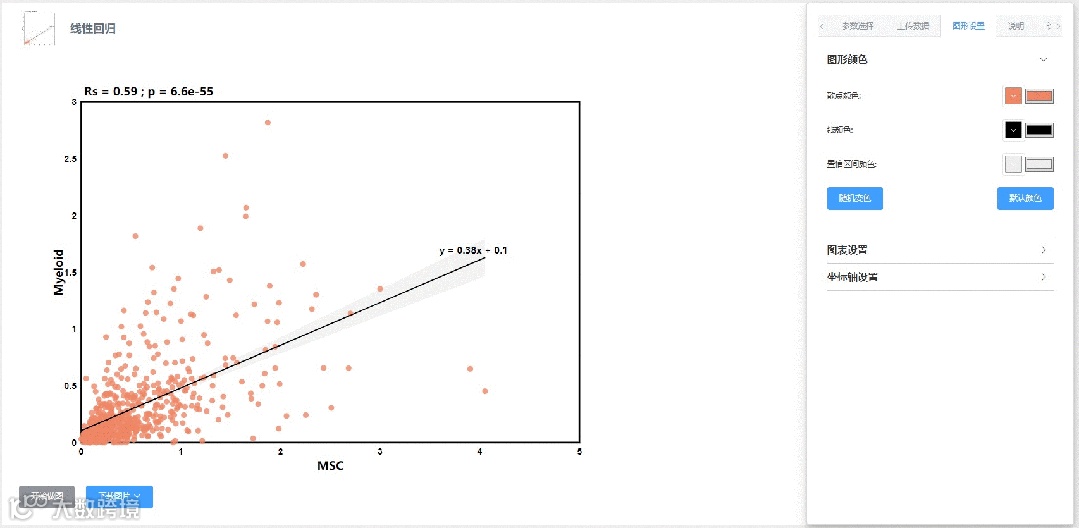 唯有一比一复现才能证明分析结果是否准确,今天我们就利用在线平台CNSknowall 继续复现发表于Nature Communications(NC,IF=16.6)题目为“Single-cell and spatial analysis reveal interaction of FAP+ fibroblasts and SPP1+ macrophages in colorectal cancer(单细胞和空间分析揭示结直肠癌中FAP+成纤维细胞和SPP1+巨噬细胞的相互作用)”中的Figure 2c线性回归分析图,大家如果有类似数据分析需求可以按照平台上示例数据格式替换成自己数据直接分析哦,让我们一起来学习下吧!