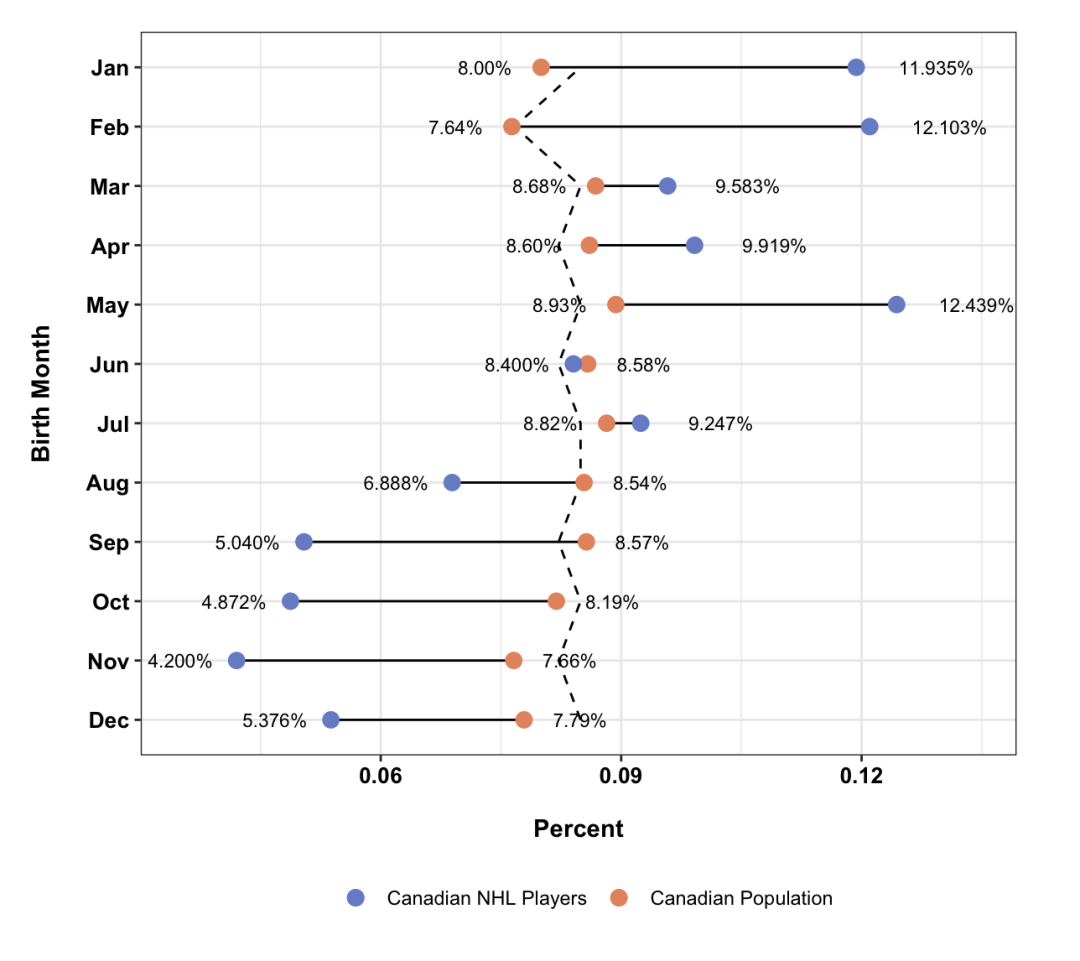 geom_point(aes(y = p_nhl, color = "Canadian NHL Players"), size = 3) +