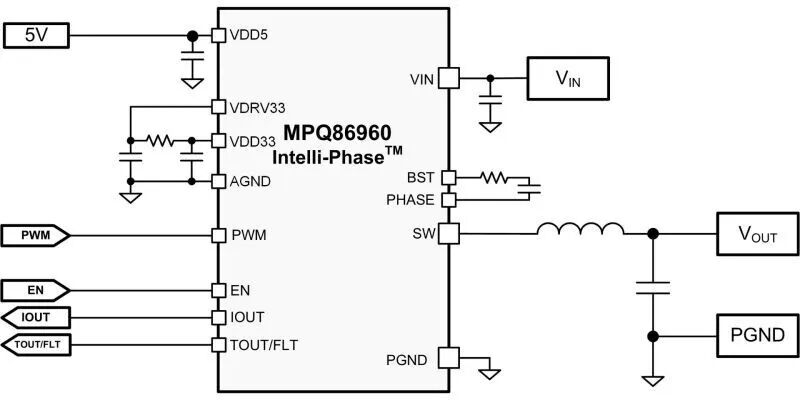 以MPQ86960为例,其效率达95%以上,封装尺寸为5×6mm(LGA-38),诊断覆盖率≥99%,性能领先于市场上的同类型产品。