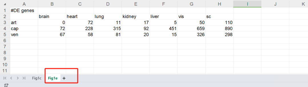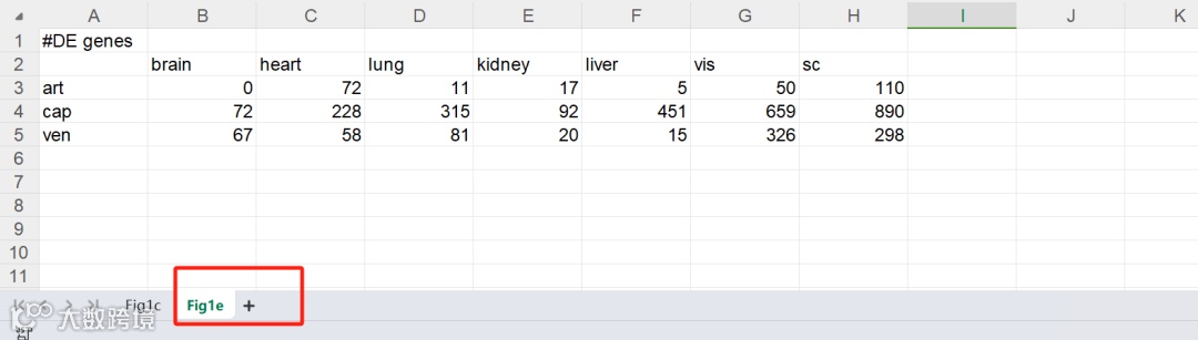 ②用Excel打开Source data Fig.1,找到Fig1e:
