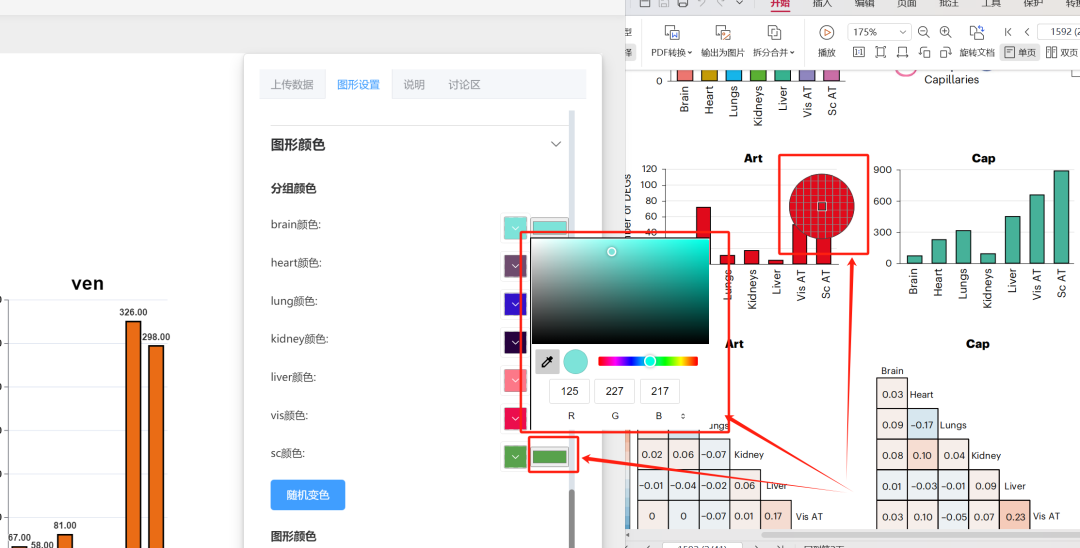 更为惊喜的是,我们首次创新性的将取色器用于在线数据分析,可以一键复制目标期刊上的配色方案(原理是取色笔可以对电脑屏幕上所有区域颜色取色):