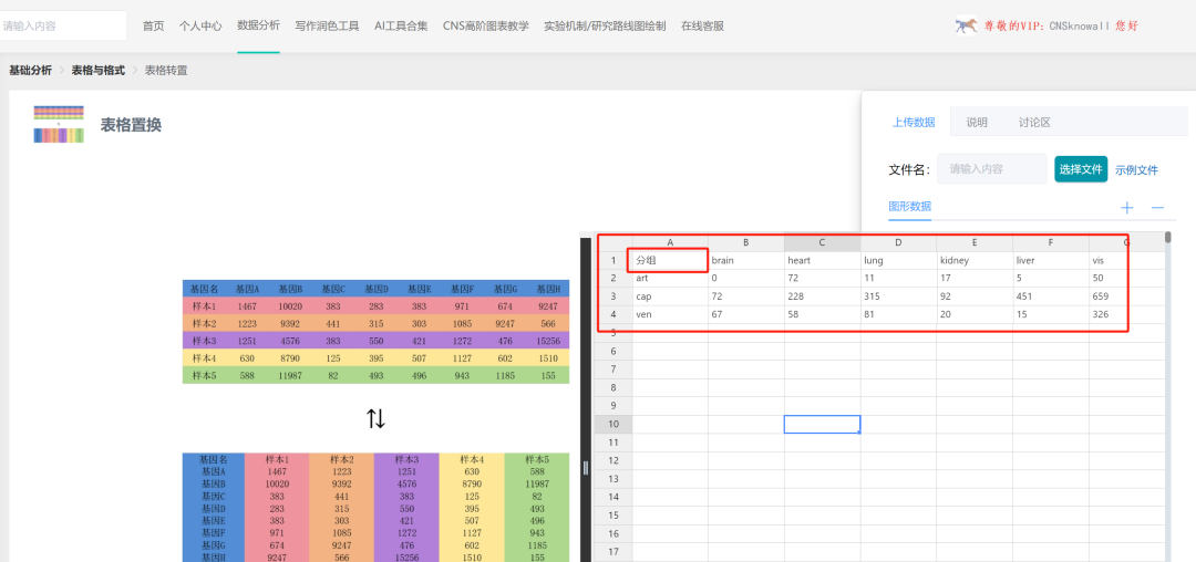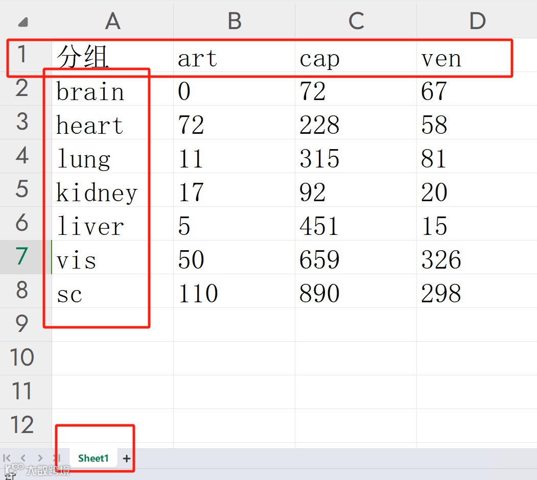 完成行列互换后得到可以直接用于1秒出图的数据: