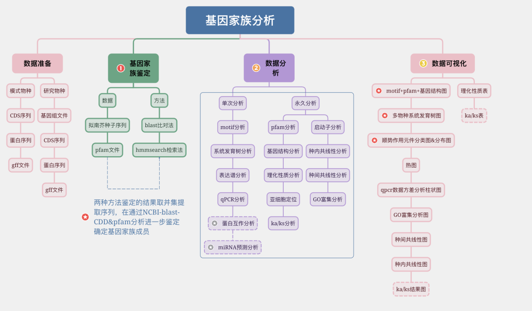❝本套课程文档详细讲解了如何做基因家族分析,通过R代码结合生信软件实现无缝链接,使得整个过程更加高效和直观。本课程适合有一定R语言基础的学习者,无论是内容的广度还是深度都能满足您的学习需求。通过掌握本课程的内容,您将能够在数小时内完成一篇文章的全部数据处理和结果可视化工作,大大加快了文章发表的速度。