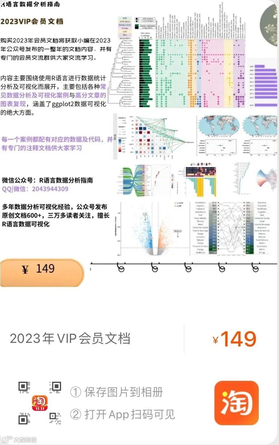 ❝本节内容介绍到此结束,过程仅供参考;完整版的代码可到小编的2023VIP交流群中查看,有需要欢迎到小编的「淘宝店铺」 「R语言数据分析指南」购买「2023年度会员文档」同步更新中「售价149元」,内容主要包括各种「高分论文的图表分析复现以及一些个性化图表的绘制」均包含数据+代码;按照往年数据小编年产出约在150+以上
