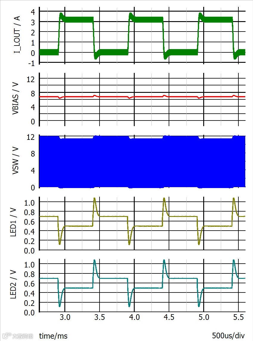 现在就可以在原理图界面点击仿真,检查模型在这组寄存器设置下的仿真功能啦。