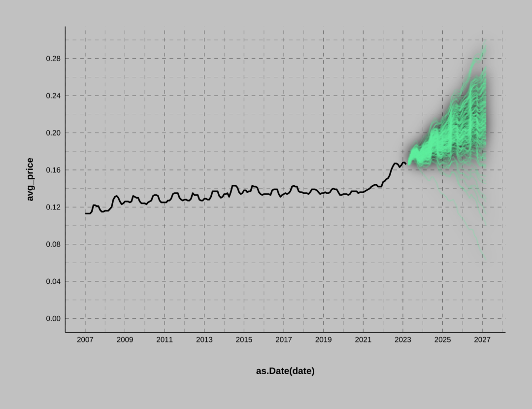 geom_line(data = df_forecast, aes(x = as.Date(date), y = .value, group = .draw),