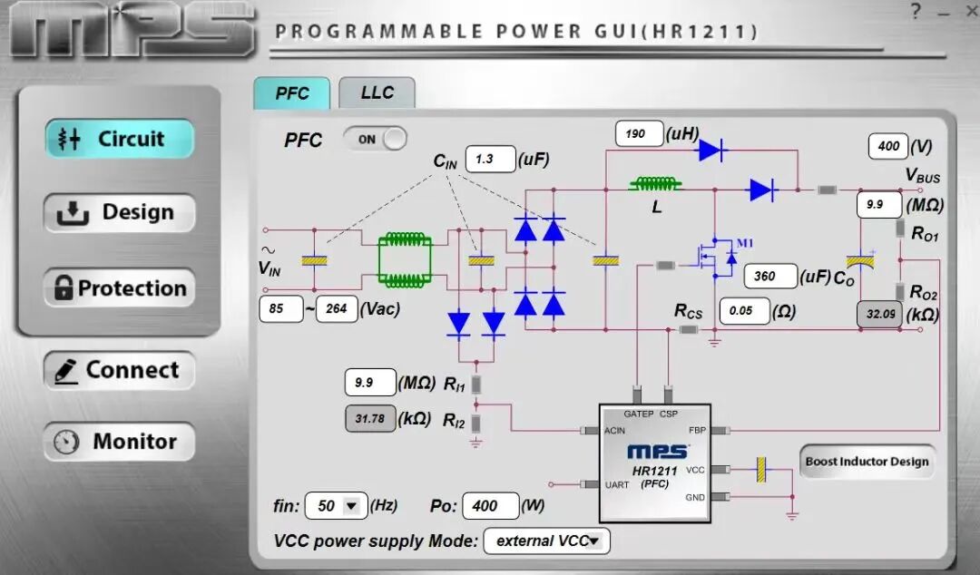 对于数字IC, PFC和LLC都可以通过一个上位机进行参数配置。