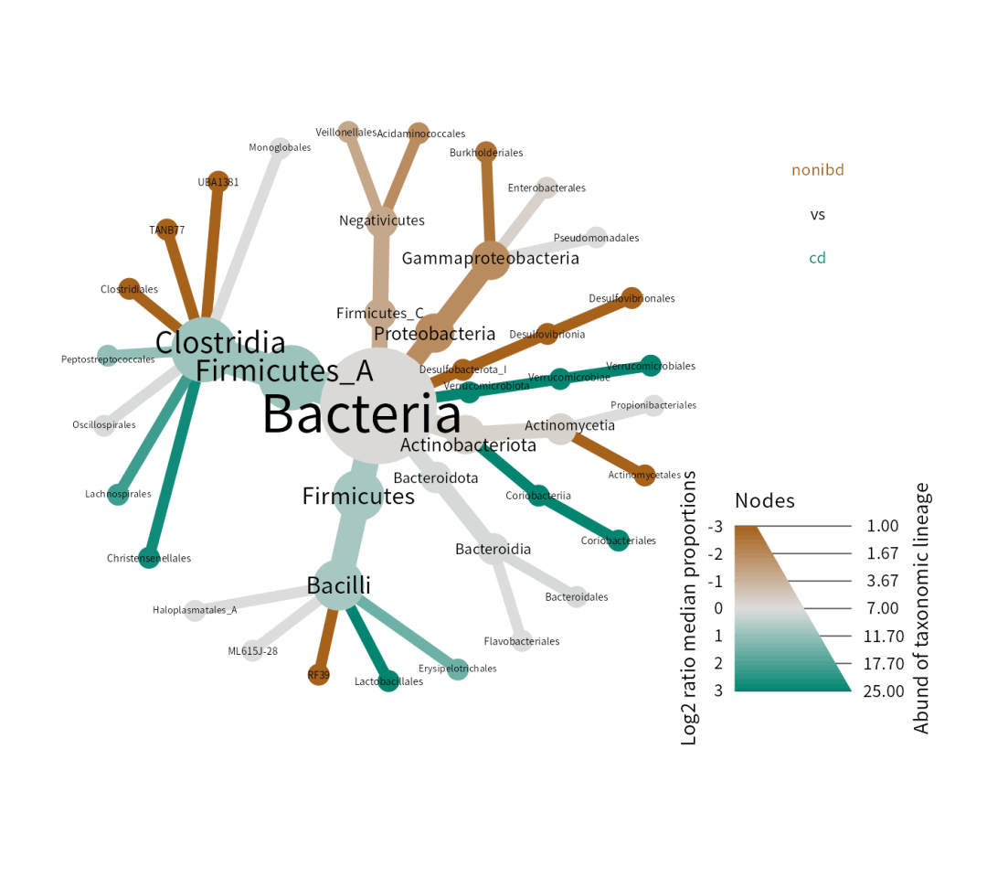 gut_metacoder$data$diff_table <- metacoder::compare_groups(gut_metacoder, data = "tax_abund",