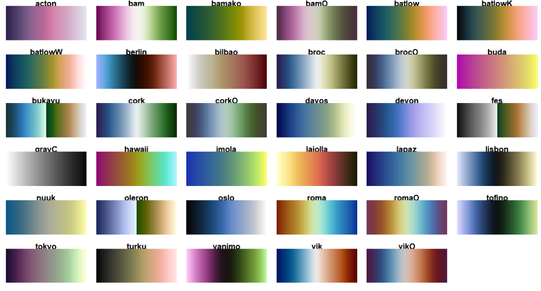❝本节来介绍一款连续型调色板包「scico」有30多个配色可供选择,同时还支持将配色导出为十六进制代码非常的方便,从此再也不用担心热图配色过于单一了。更多详细内容请参考作者官方文档