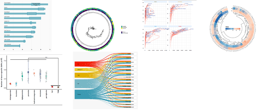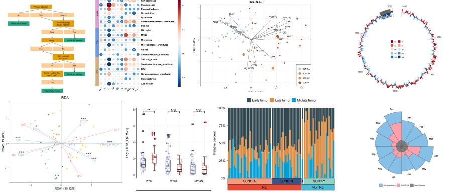 ❝经过上面的入门+进阶的学习;相信各位已经能完成「数据导入-数据清洗-数据可视化」这三部曲独立写出一些简单的R代码了,但是如果想更加进一步完成更加复杂的绘图案例则还是非常的困难。「由于R属于开源语言拥有众多的开发者来进行R包的开发,因此学习起来知识是不断的更新迭代的」。这个时刻就需要广泛的查看众多公众号所创作的经典案例文档了,这样才能在短的时间内丰富自己的知识库。