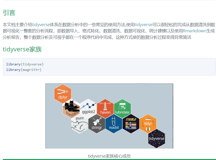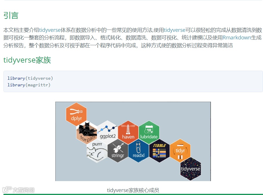 ❝上面介绍的书籍及在线资源基本围绕着数据可视化展开,但是R语言出了使用「ggplot2」进行数据可视化之外,还有强大的「tidyverse」家族包来进行数据清洗。「数据清洗作为可视化的第一步因此也极其的重要」 学习数据清洗小编推荐两份学习资料