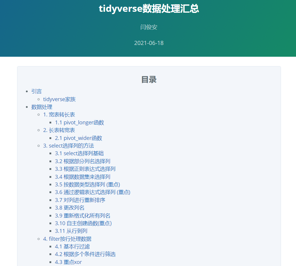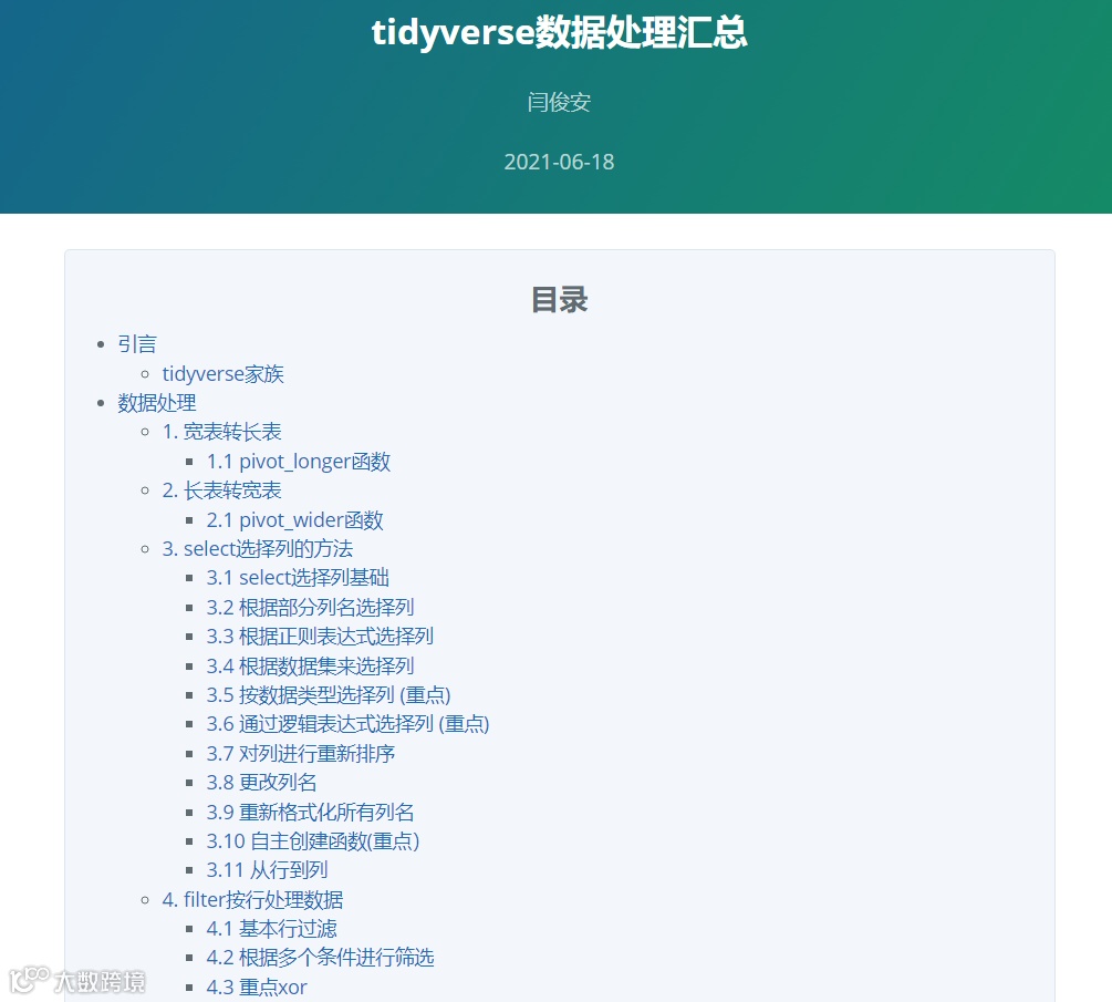 ❝此文档为小编根据个人的学习经验在「2021年整理了一份tidyverse学习手册」里面包含了众多实际数据清洗中会经常遇到的案例非常的接地气,后台回复「tidyverse」可获取文档下载链接。