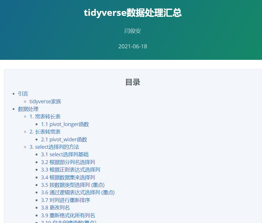 ❝数据的清洗部分,可以看小编总结的tidyverse文档非常的简洁实用。