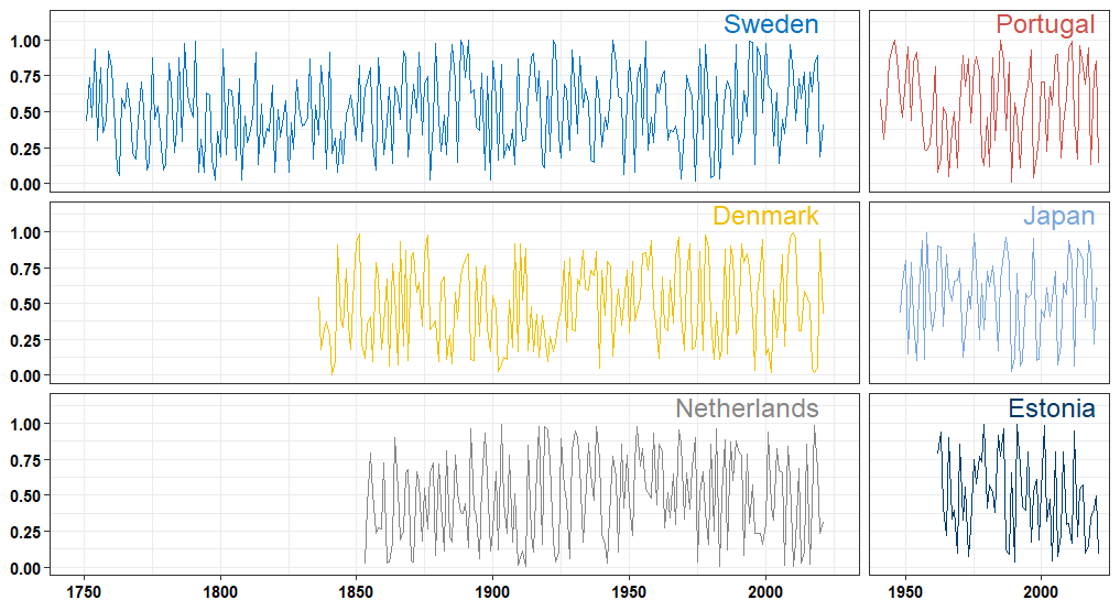 country = c("Sweden", "Denmark", "Netherlands", "Portugal", "Japan", "Estonia"),