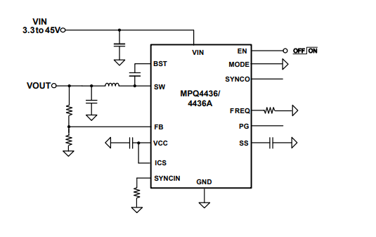 还有具有展频功能的版本 MPQ4436A,展频功能可降低系统的 EMI 干扰,降低客户整板的 EMI 设计难度,客户可以根据需求灵活选择。