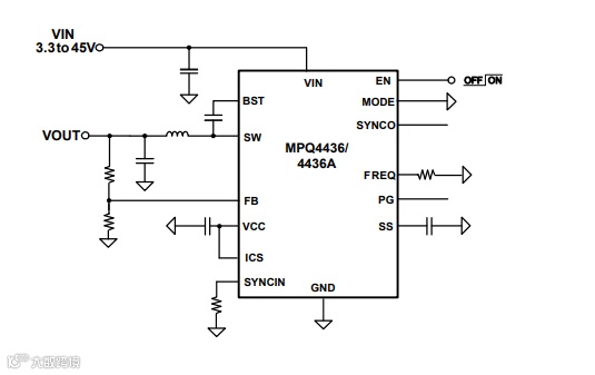 图4:MPS 公司一级电源方案 MPQ4436-AEC1