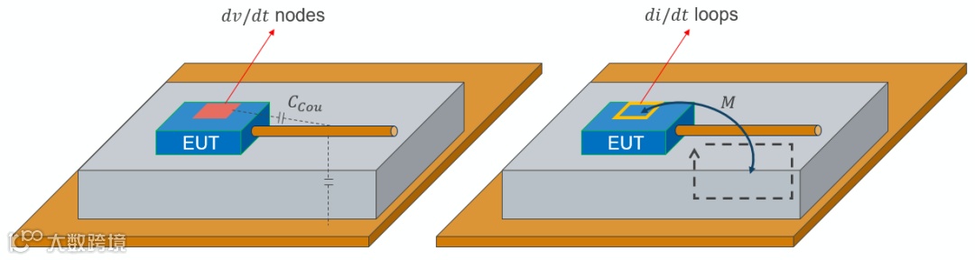 值得一提的是,到现在我们还没有考虑近场耦合的问题。然而,在实际中,因为输出线是一个很大的导体,它和EUT之间的近场耦合往往是不能忽略的。近场耦合分为电场耦合和磁场耦合两种,下面我们将逐一讨论。