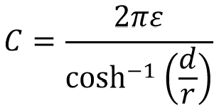 由于我们的输出线有如图11(b)所示的几何形状,这些参数都可以通过电磁场理论求出。当不考虑损耗时,我们主要关心单位电感与电容,它们分别由式(4)和(5)表示。其中,d表示线与参考地的距离,r表示线的半径,ε为介质的介电常数,µ为介质的磁导率。这里因为是共模噪声,所以输出的两条线近似合并为同一导体考虑。