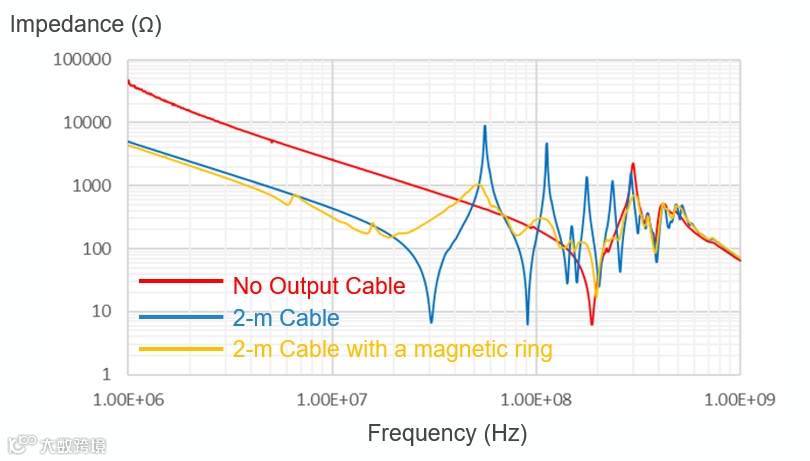 这个理论也很容易直接通过测量进行验证。图12为不同长度传输线的对地阻抗测量结果,显然,对于2m的输出线,其阻抗谢振峰的位置符合我们之前的计算结果,这也解释了EMI测量结果中的谐振峰。另外,输出线越短,谐振发生的频率也越高。