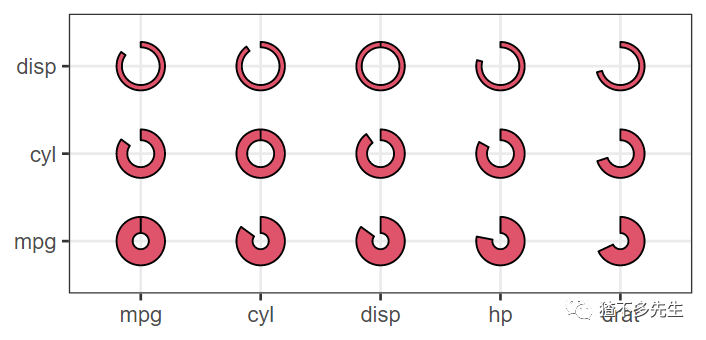 ❝在ggplot2中使用「ggsector」非常简单,只需要使用geom_sector即可,参数中去除常规的x、y、fill、color外,还有其他几个可以高度自定义的参数。请看以下案例: