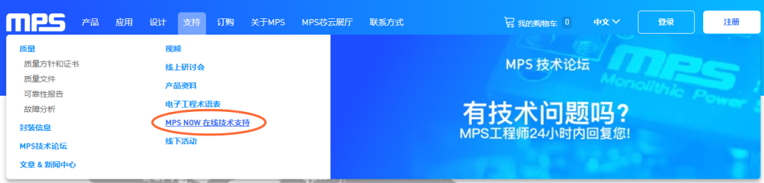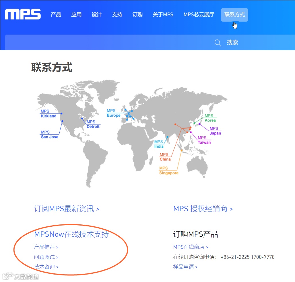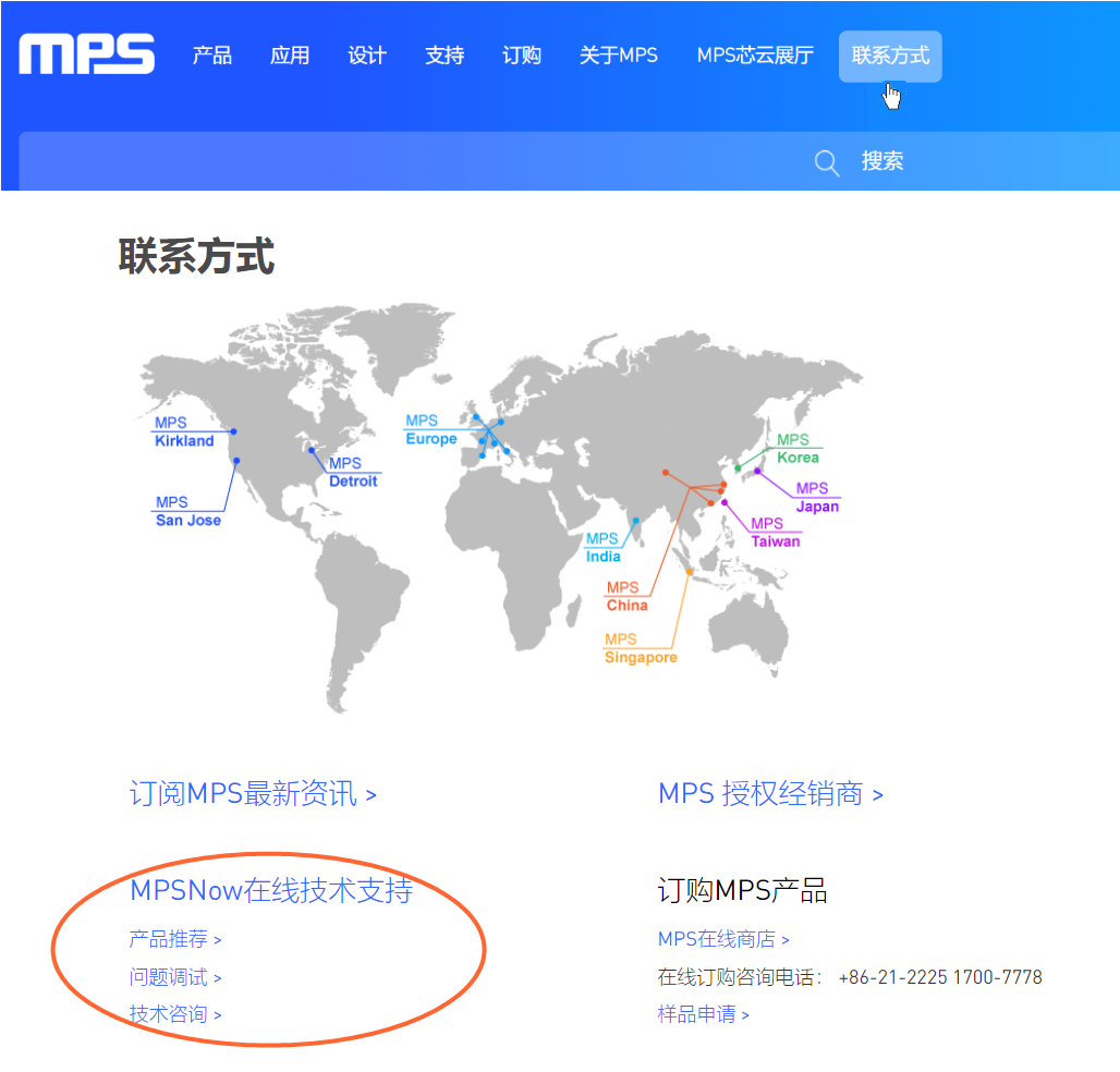 或者,点击 “联系方式 >>MPS NOW 在线技术支持”