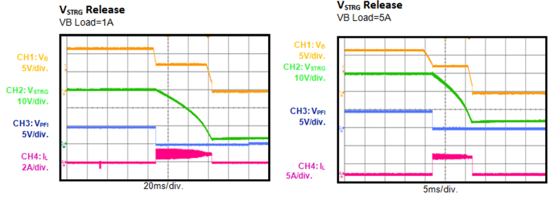 由能量守恒定律,当储能电容的电压可以达到更高的时候,其容量可以大幅度缩减。如,MP5515有能力将储能电容电压泵升到高达36V。在总能量需求一致的条件下,其相比于18V,8.4mF的储能电容电压,可将电容容量缩减至2.5mF以下,体积更小,ESR更小。