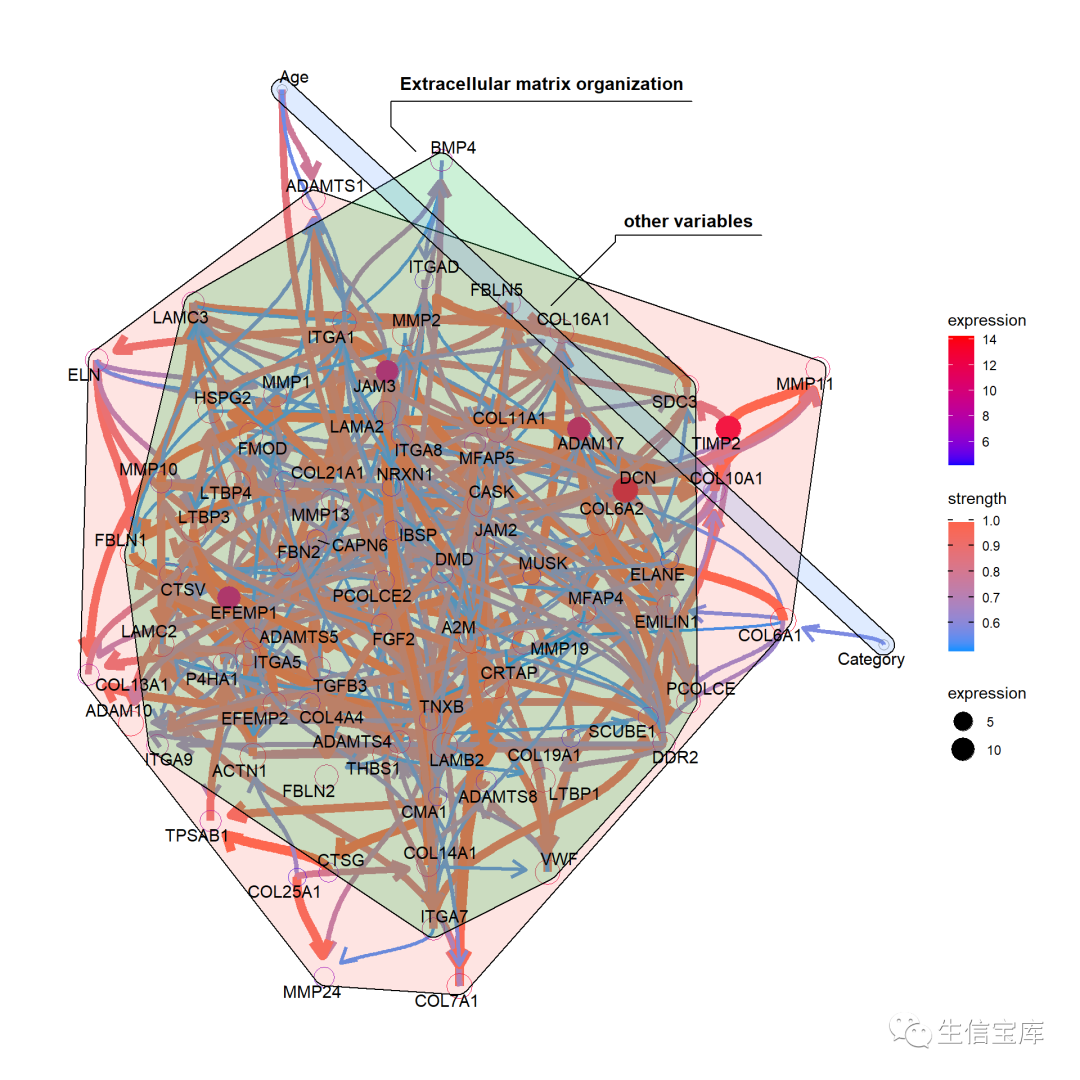 对于感兴趣通路中的基因,也可以纳入临床变量。我们研究了参与反应团的基因“与弹性纤维相关的分子”。