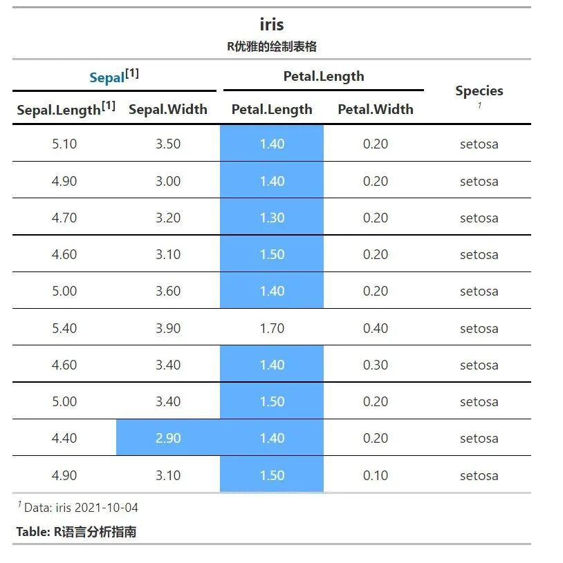 gt::cell_fill(color = "lightcyan"))) %>% #定义标题行填充文本与颜色