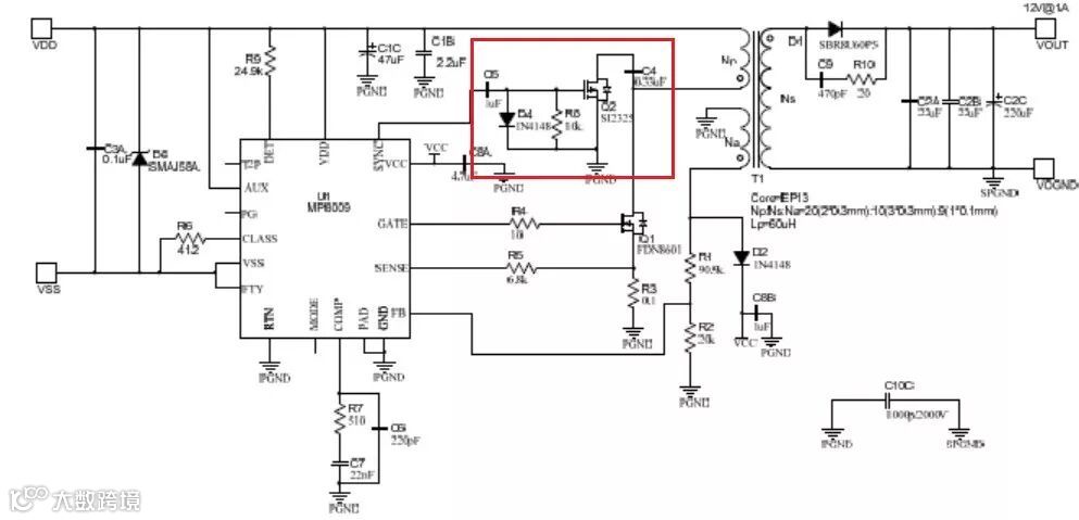 普通PD+DCDC芯片大多采用反激变换器做隔离电源,常规的RCD吸收电路把漏感能量消耗在电阻R上。消耗的能量越多,开关管的电压应力就越低,但也影响了整个变换器的效率。因此常规的RCD吸收总存在着开关管电压应力与整个变换器效率之间的矛盾。