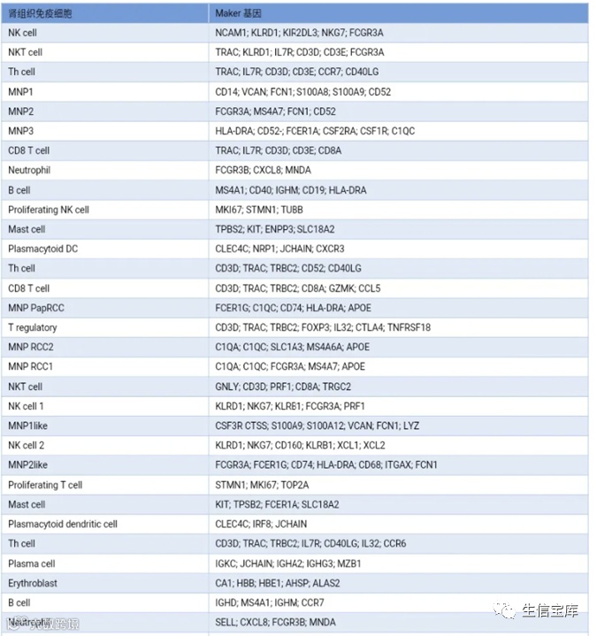 如下图是一篇做正常肾组织单细胞文献中用到的标志基因: