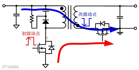 众所周知,在开关电源中EMI的来源是开关动作所产生的动点电压,而在反激电路中初级侧的主开关管和次级侧的同步整流管则分别是最主要的两个动点。
