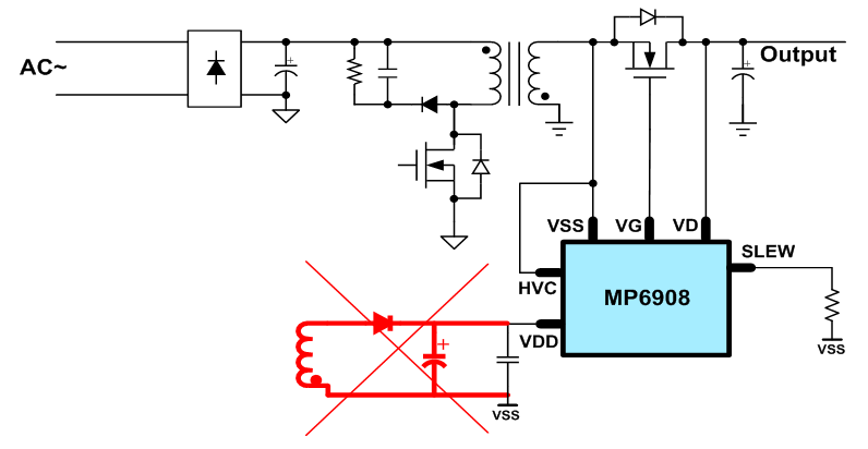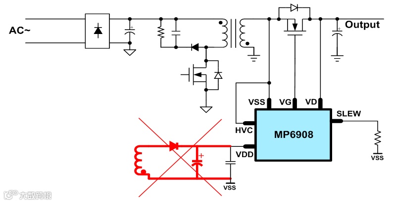 MPS公司的MP6908,其内部集成高压自供电功能,无需外加辅助绕组或任何外围元器件即可实现同步整流位于高端,轻松拥有优越的EMI性能。