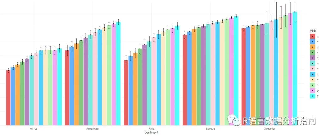 可以看到上图,主要采用了分面,同时将常见的箱线图转化为了点图+误差线,同时添加了阴影并使用ggh4x做了分面的注释;分析到此那我们就开始画图实操