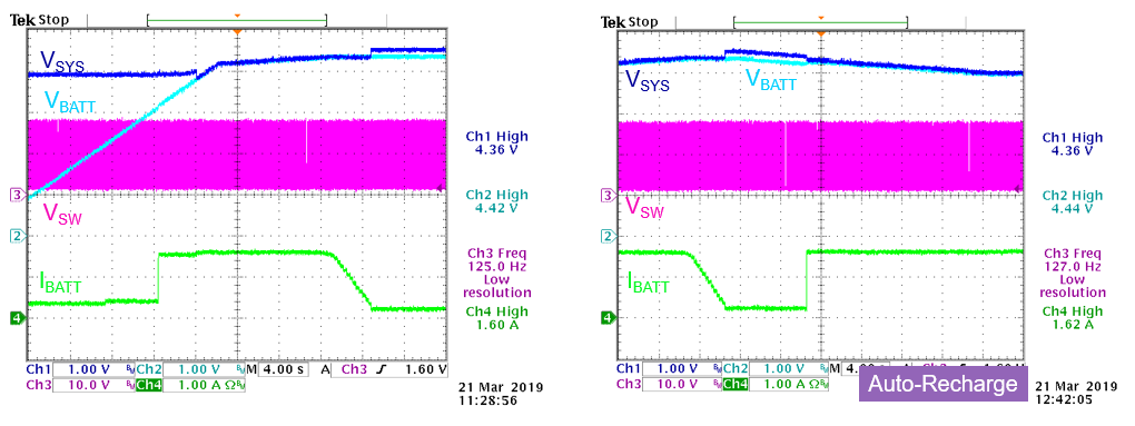 典型充电曲线(工作条件:VIN=16V, VBATT ramp from 0V, ICHG=1.84A, ISYS=1A)