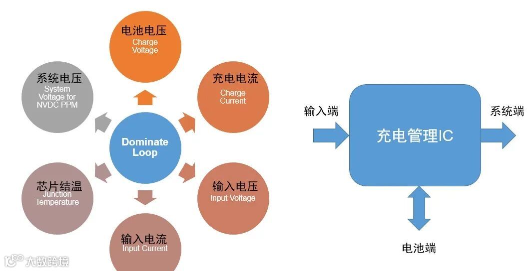 电池管理IC的一大难题就是其控制环路比较多,不仅要对输入端进行管理(输入电压和输入电流调节),还要给系统端供电(对系统电压进行调节),同时,还需要不停地监控系统的温度,以实现充电的性能和热性能达到平衡。