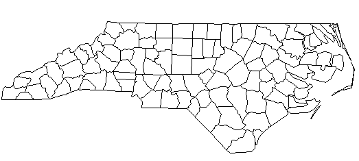 用 rgdal 包导入的北卡罗来纳州的地图如下图所示: