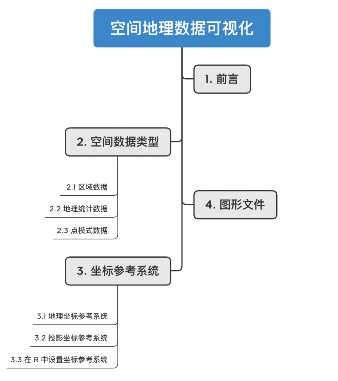 本篇主要介绍:用 R 包制作地图的基础内容,包括:几种空间数据类型、不同的坐标参考系统介绍以及如何使用 R 包导入图形文件以及绘图。