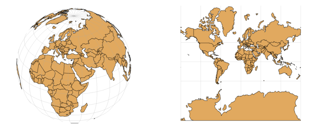 投影是将地球的三维表面转化为某一个二维平面,所有的地图投影都会以某种方式扭曲地球表面,并不能同时保留所有的面积、方向、形状和距离属性。