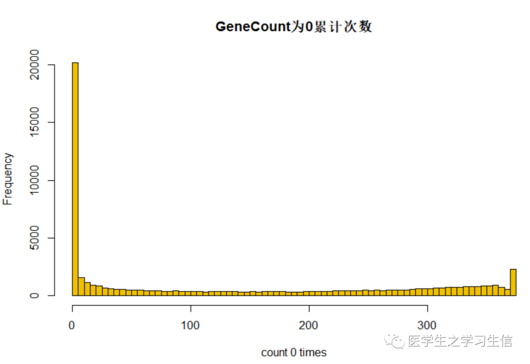 count0 <- apply(exprDat, 1, function(x)sum(x==0)) #统计count为0的情况