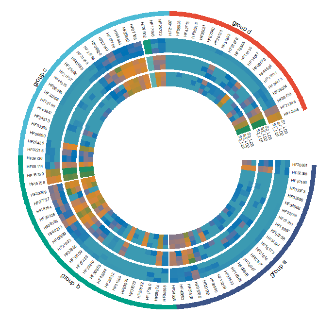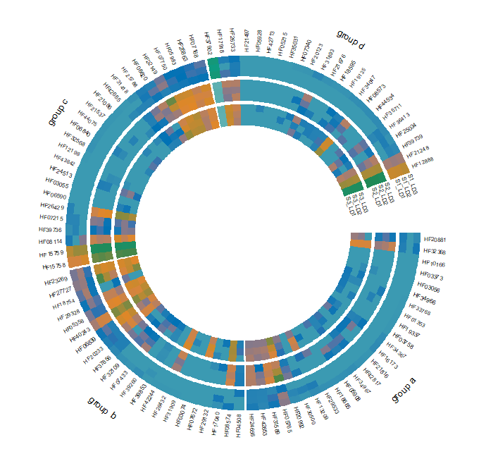 之前热图的文档已经写了不少,组内相关性热图,组间相关性热图,ggplot2版热图,ggplot2版圆形热图都有涉及;但是今天来介绍如何通过circlize来绘制高端圆形热图,可以点击下方链接观看之前的文档,后台回复20210926获取本文数据及其代码